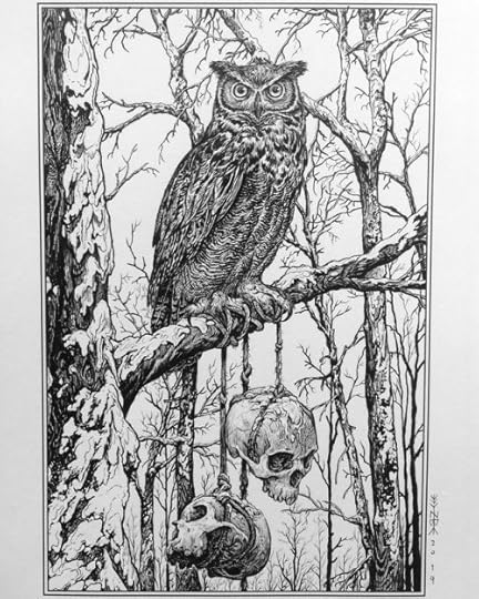 #illustration #inking #artcommission #greathornedowl #folkhorror #winter #brushandink