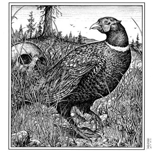 A pheasant. #illustration #penandink #brushandink #folkart #pheasant #weirdpastoral #skull
