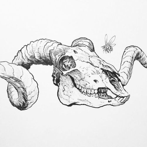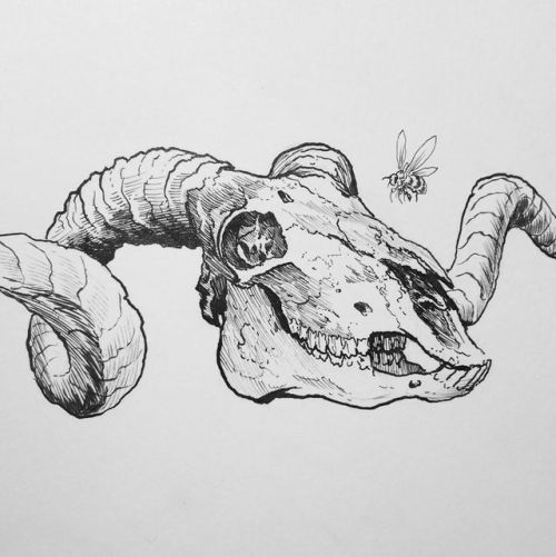 Drawing a bunch of skulls for the campaign bundles. Here’s a half Inked ram skull.