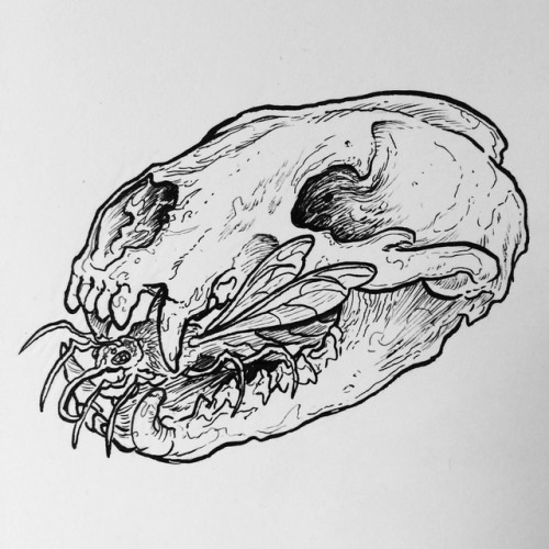 #badgerskull #badger #insect #brushandink #penandink #drawing