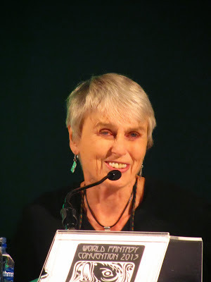 This bit is awesome, if you have Fannish inclinations. I SAW SUSAN COOPER!! IN THE FLESH! She is real! Susan Cooper, in case you don't know, wrote The Dark Is Rising series, five books that dominated my childhood. I lived and breathed those books. I liked to pretend I was an Old One in disguise. *sigh*