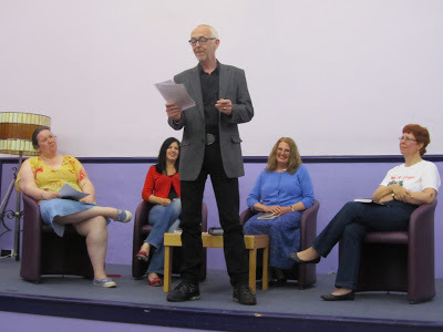 Victoria Blisse, Lexie Bay, Ashley Lister (standing), KD Grace, Jennifer Denys.Ashley's poetry was particularly dirty. In fact, as the day went on I realised that I had erred too far on the side of caution in picking my own reading.