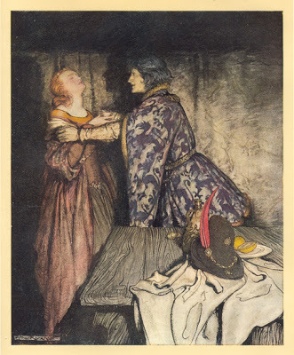 Arthur Rackham: How Tristram and Isoud Drank the Love Drink (1917)It's been a pretty popular subject with artists over the years, being full of angst, sexual compulsion, fighting and moral drama (though few artists have had the guts to depict the actual shagging). Most of all, it gave Victorian and Edwardian artists an excuse to legitimately depict adultery, which would have been considered an impossibly low and offensive subject if not dressed up in romantic Arthurian guise.