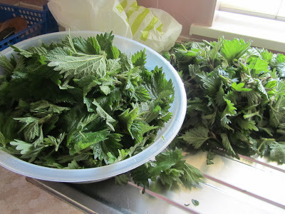 I spent last Saturday helping cook our annual medieval banquet, and decided to entertain myself by having a go at a stinging-nettle dish, something I'd never attempted before. After all, I figured, it's hard enough to get people to eat veggies at a feast - why not go the whole hog and serve something they're actually frightened to try? ;-)