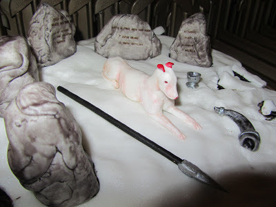 The "subtlety" or "conceit" - a display piece in which the food is made to look like something it is not. In this case, sugar and marzipan made to look like a snow-scene. Sadly, I cannot take credit for this gorgeous artistic creation!