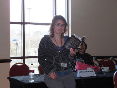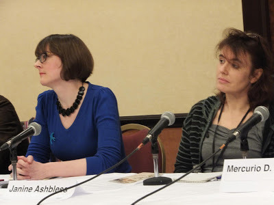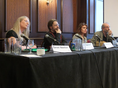 Me sitting next to Bella Pagan of Tor books - probably the nearest I'll ever get to a mainstream publisher!And "Robert E Howard and H P Lovecraft," which - despite the serious faces - was a lot of fun for me because I ranted about the sexuality in their work and everyone else looked a bit nervous: