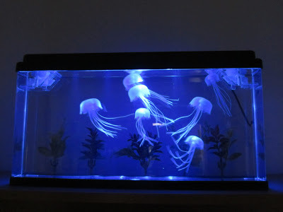 So I bought a tank of fake plastic jellyfish, which is basically the 21st Century equivalent of a lava lamp. The only disadvantage with these fakes is that you have to massage them intimately every day to get rid of the air bubbles.