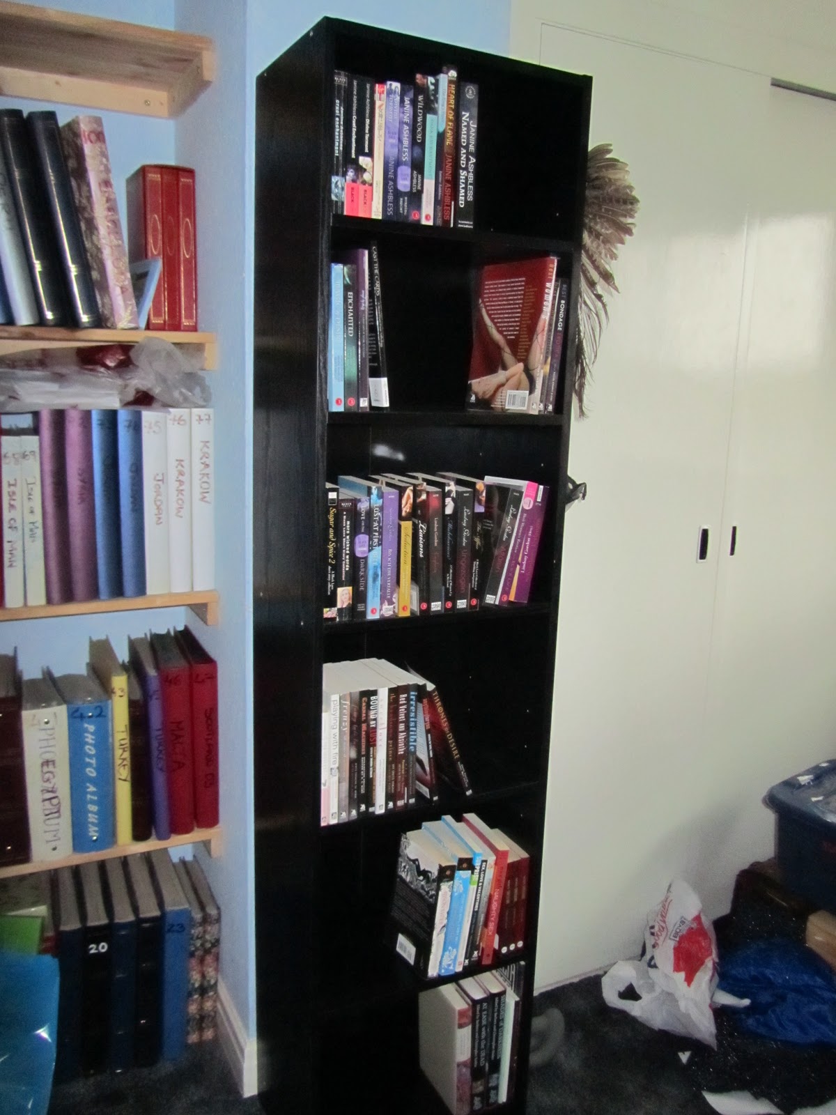 My old ego-shelf was overflowing, so Mr Ashbless made me a supersize new one, with room for foreign editions and everything.