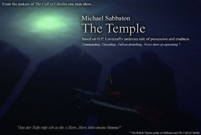 It's got nothing to do with erotica, but I want to tell the world how much I enjoyed Michael Sabbaton's rendition of H P Lovecraft's The Temple and The Call of Cthulhu at Harrogate Theatre. Try imagining a one-man dramatisation of those two tales: a submarine captain trapped among the corpses of his crew in his powerless U-boat at the bottom of the ocean ... and the perilous piecing together of a worldwide cultic conspiracy ...