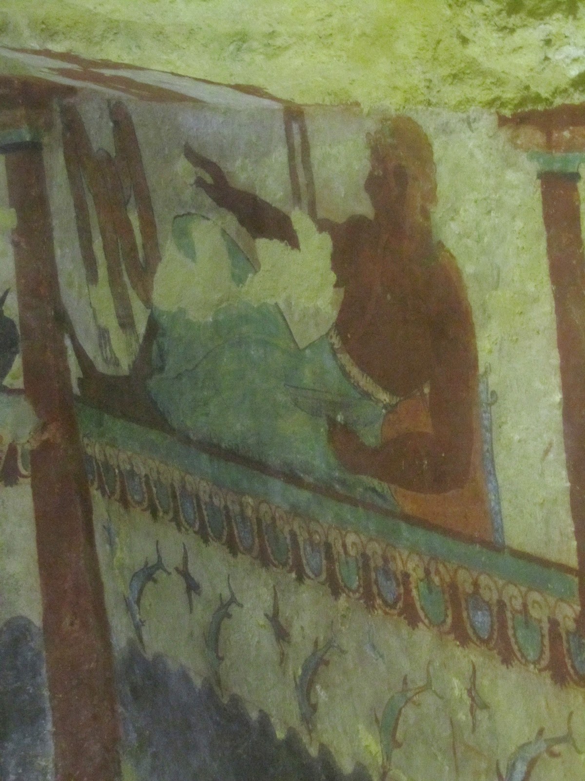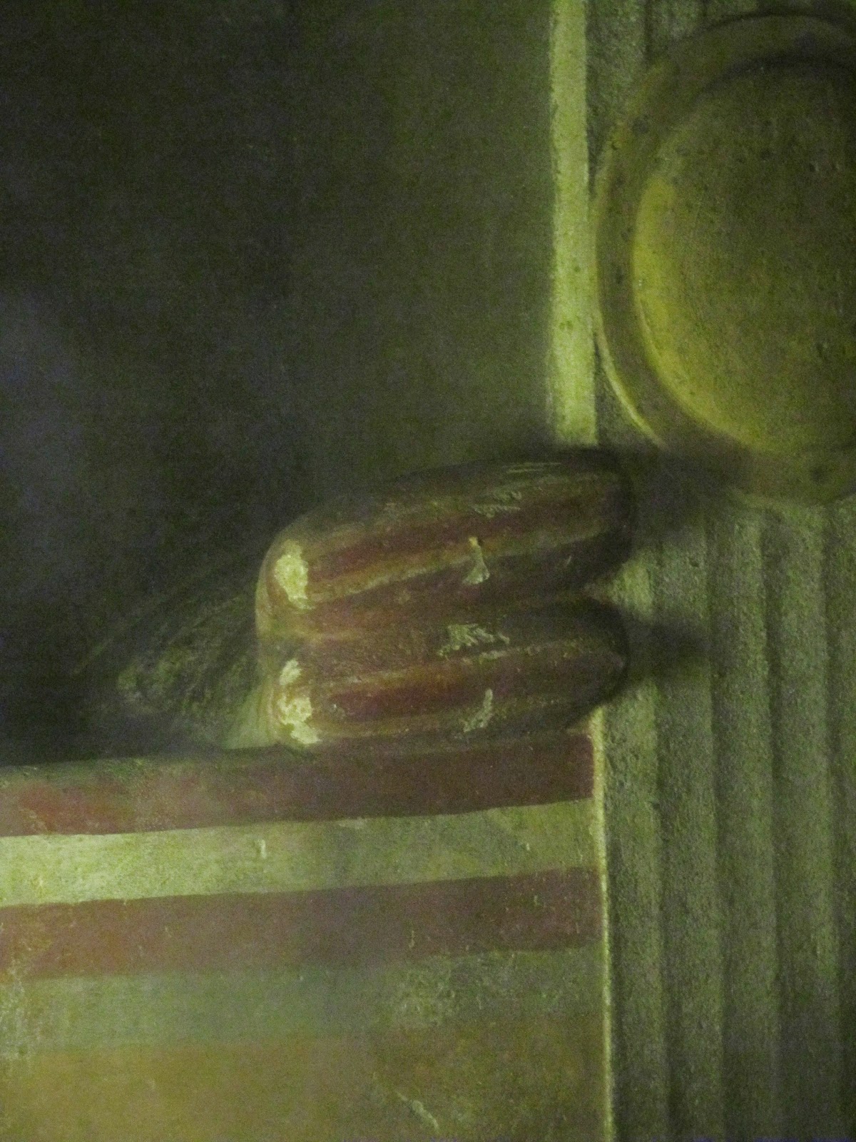You can probably make out that the paintings are pretty degraded - the most fragile have been removed to the (excellent) local museum. Those that remain are protected behind perspex doors from the 100 % humidity lurking at the bottom of the graveshafts (the walls are running with condensation), so please forgive the less than brilliant photography.