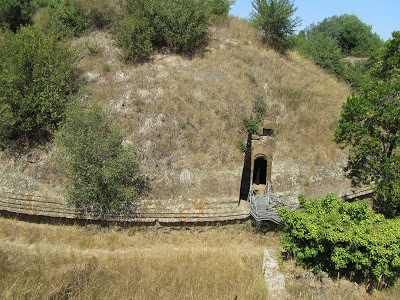 After Tarquinia, we went to Cerveteri, which is practically on the outskirts of Rome nowadays. No doubt this accounts for the fact that it is practically unvisited and unheard of - in any other country it'd be FAMOUS. It's a huge necropolis - 50,000 people were buried there in what is literally a City of the Dead. There are streets of terraced "housing" for the departed: