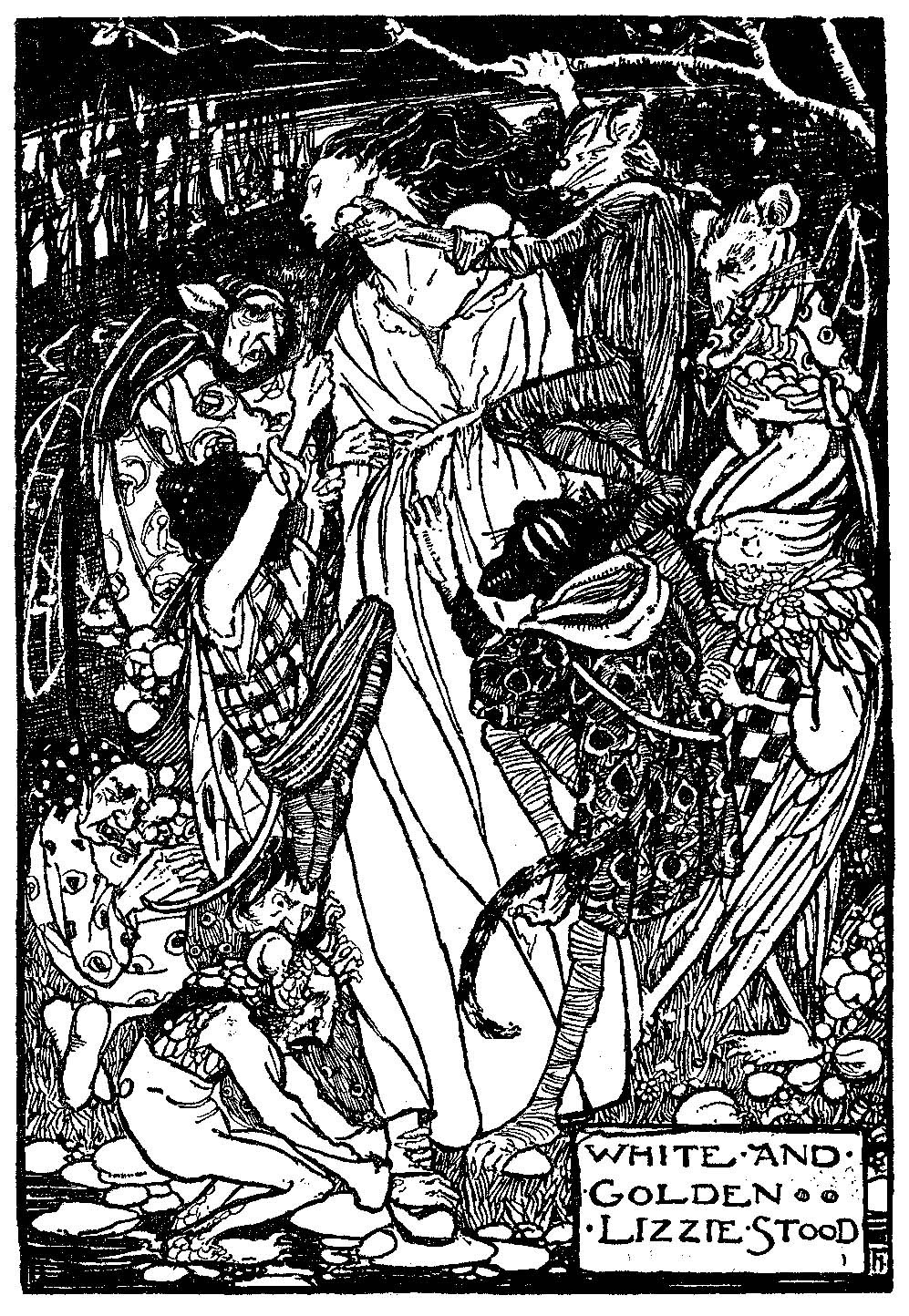 Lizzie utter'd not a word; Would not open lip from lip Lest they should cram a mouthful in: But laugh'd in heart to feel the drip Of juice that syrupp'd all her face, And lodg'd in dimples of her chin, And streak'd her neck which quaked like curd.