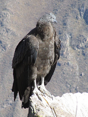 Away from the jungle and up in the Andes, this is one of the Condors we saw. They come up out of the Colca Canyon, where they nest, at about 8am, riding thermals and gradually getting higher until they can fly off to go scavenging on the high sierra. We were very very lucky with condor-watching and saw at least seven that morning. They were happy to come within a few yards of us.