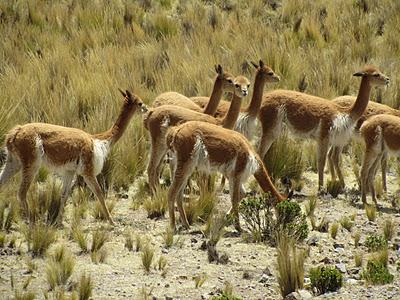 There are several members of the camel family in Peru. These are Vicunas, the wild version. They live at high altitudes.