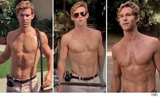 Episode 3 and in walks a new character: Alcide the werewolf. Wow. I think my eyeballs nearly fell out. He has, no denying, one of those everybody-in-the-room-stops-what-they're-doing-and-stares bodies. It feel churlish to raise even the faintest complaint.