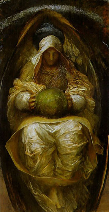 George Watts: The All-Pervading (1890)(Is it just me, or does this angel painting bear a schematic resemblance to a vulva?)If you don't get the Sinful Press newsletter (and if you don't you should), do pop over to read it online - it contains among other things a quickie interview with yours truly ... in which I finally 'fess up to something I've never yet mentioned online.