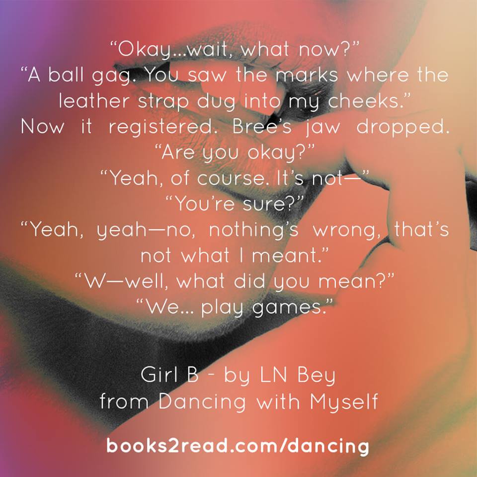 LN Bey is the author of the erotic novel Blue and the almost-a-novel collection of erotic stories Villa, to be released later in 2018. Besides being included in Dancing With Myself, LN’s short stories have been published in The Big Book of Submission 2, Best Bondage Erotica 2015, Love Slave: Sizzle, and the soon to be released No Safewords 2. LN’s reviews and essays on BDSM can be found at
