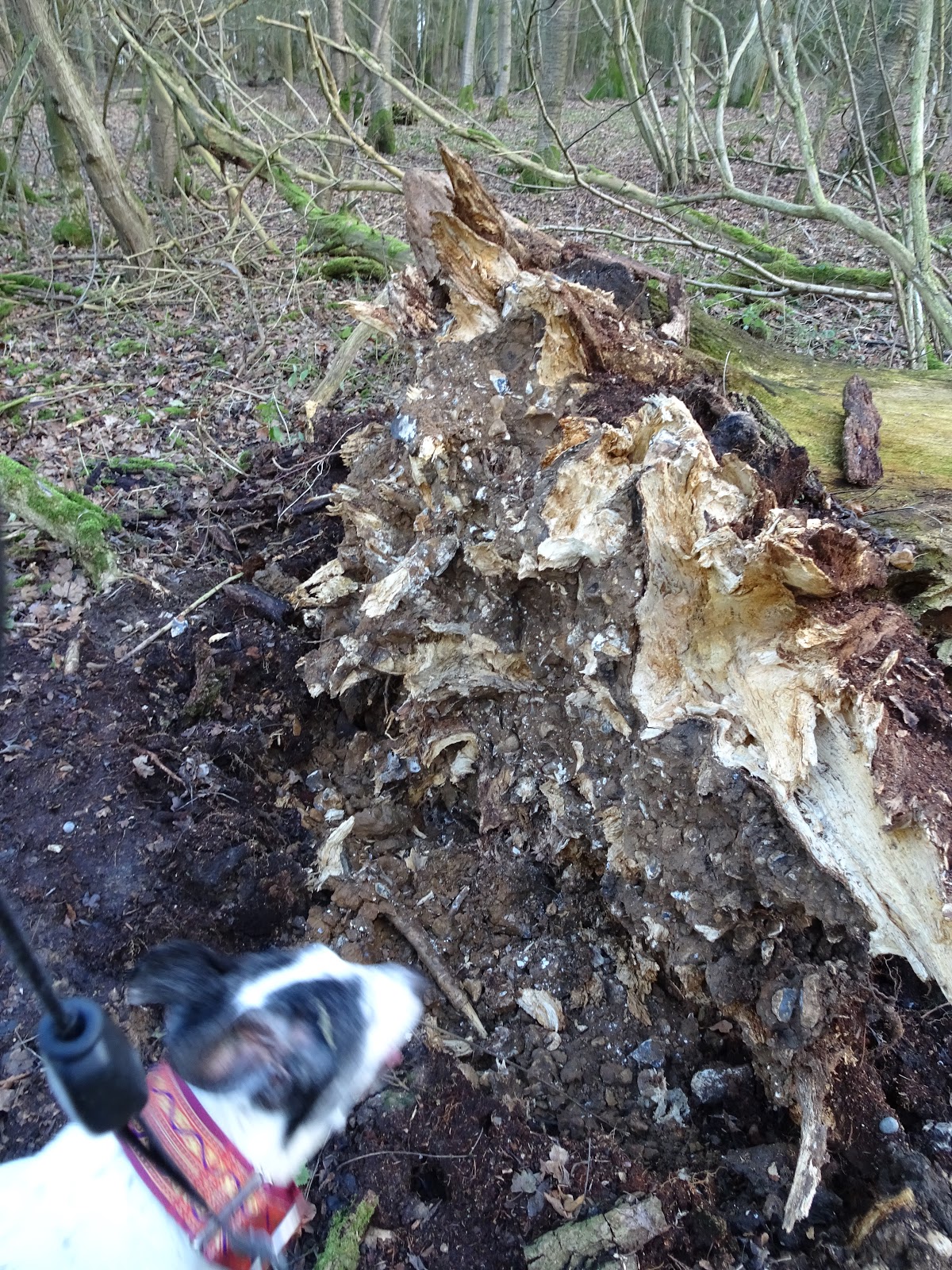 It's been standing dead since well before we bought the land, and tbh I'm surprised it took so long to drop. The roots were completely rotted away: