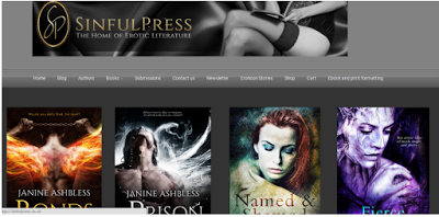 Hahahah! I appear to have taken over Sinful Press! When you visit their website my four books are plastered across the top of the homepage (well, temporarily, for about 5 seconds until the rolling banner moves on... all glory is but brief, eh?).