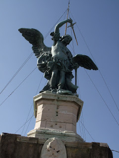 Nobody seemed to have witnessed us, so we gathered ourselves and slipped out onto the main street. We pushed across stationary traffic and onto the Ponte Vittorio Emanuele II. The flow of pedestrians was that way too; a vast crowd heading toward Vatican City just over the water. Many were praying out loud. Everyone looked nervous. I glanced up and wondered at the strange look of the clouds overhead; they were clotted and writhing, like spoiled milk.