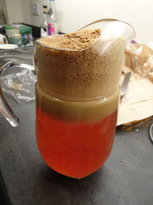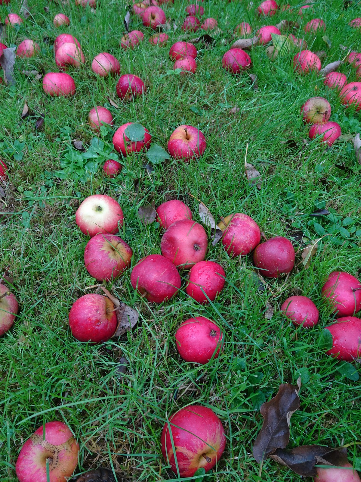 I've been on the road this week, visiting family among other things, so I've had nothing to offer my blog except this small moment of domestic goddessness: I've been collecting windfalls and have made fresh apple juice (that's cider for you Americans, lol) for the first time: