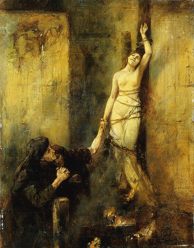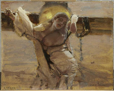 In The Moonlight by Albert von Keller (1844–1920)Albert von Keller was a society artist who mostly did pretty dull dinner-party portraits, but seems to have a thing for, um, BDSM paintings of tortured young women.