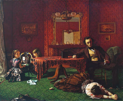 Augustus Egg: Past and Present no.1: Misfortune (1858)In the very famous painting above, the wife's adulterous letter has been intercepted by her husband and she's about to reap the whirlwind. In fact the other two painting in the tryptich go on to show the children abandoned in a garret years later, and the destitute adultress dying under a bridge near the Thames.