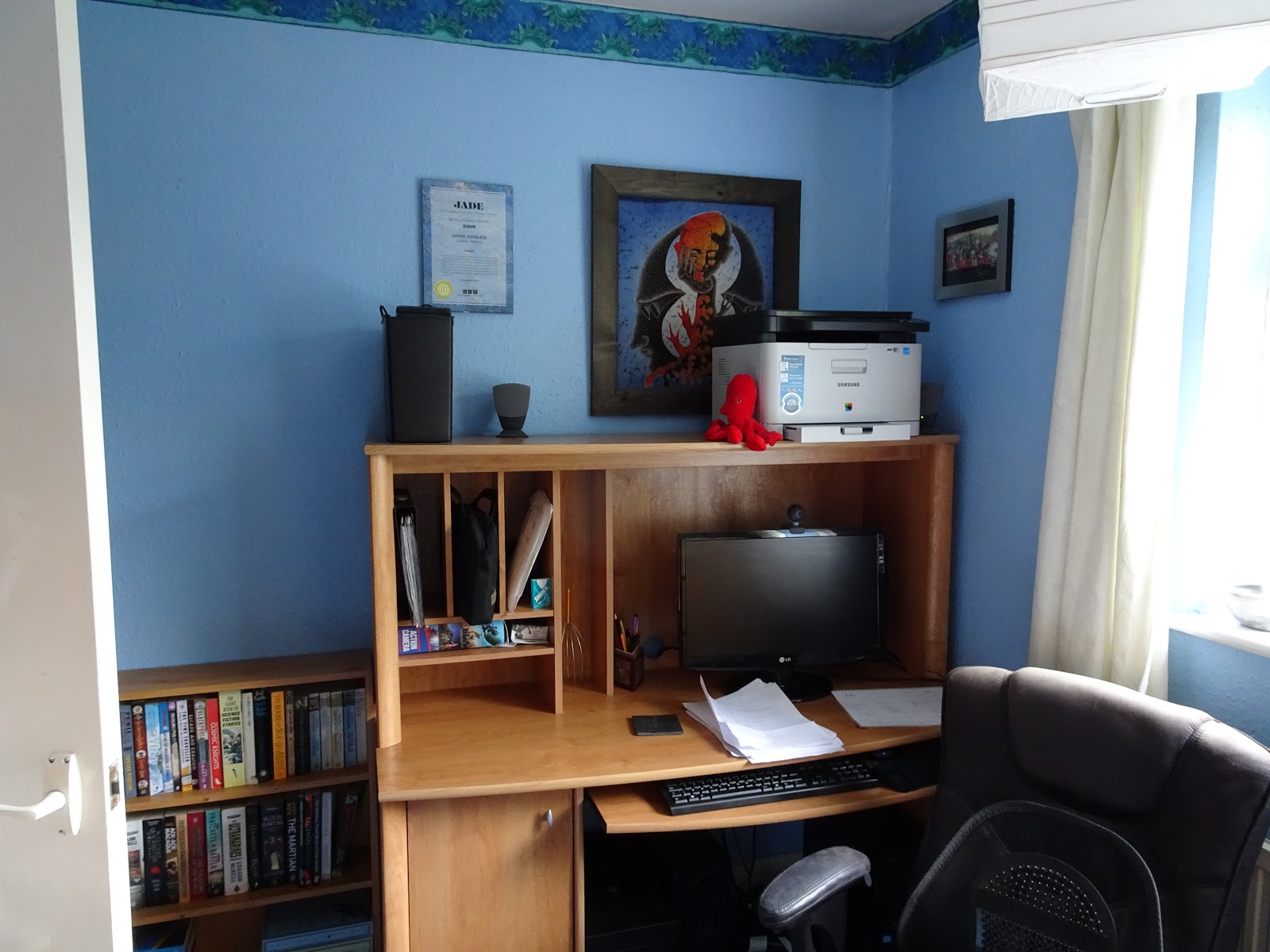 It took a week to clear down to visible desk-top, let me tell youBecause we're selling the house and the guy is turning up to take photos for Rightmove first thing on Monday morning (*muffled Ashbless sobs*) , I have been doing a WHOLE lot of tidying up. Mostly it has involved hiding shit in the loft, and throwing out computer games we have never played and can't even run on the PC now. In fact I was advised by a Facebook friend to hide "anything that might be off-putting - really stupid stuff like a candle with a pentacle on it, books with "offensive" covers (specifically erotica), even a scruffy dog bed".