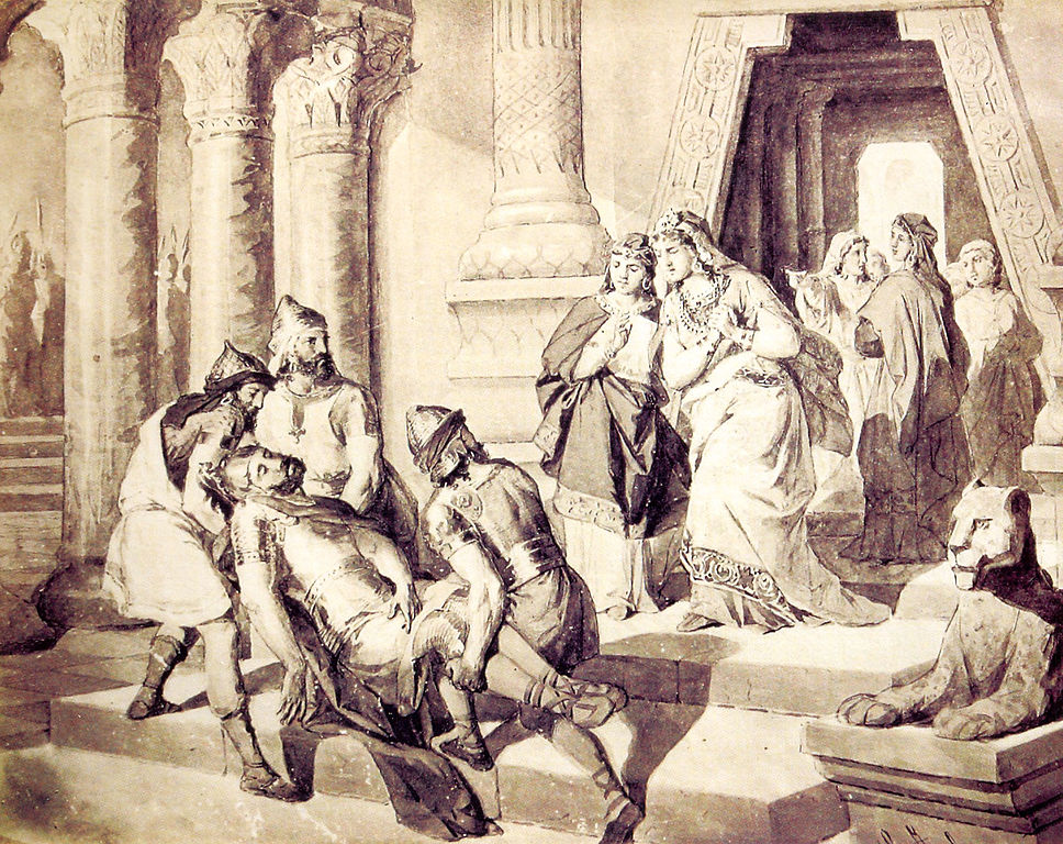 Semiramis staring at the corpse of Ara the Beautiful, Vardges Sureniants 1860-1921She lived to a ripe old age and never lost a battle, but upon returning from conquering the armies of the Indus (her cunning tactics having included fake elephants), she was murdered by her own son, the only man she thought she could trust ... because children are ungrateful shits.