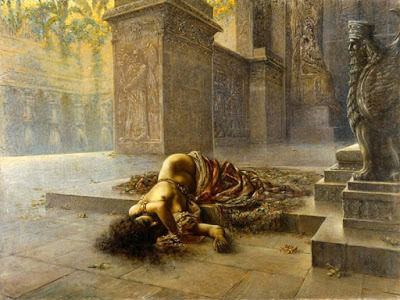 Augusto Valli: Semiramis dying on Nino's tomb (1893)Semiramis is mentioned in Shakespeare, in Dante's Inferno (circle of Lust, naturally), in a play by Voltaire and several operas, including one by Rossini.