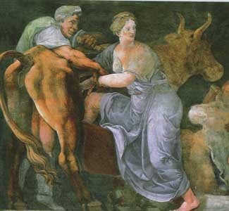 She realised that if the bull were to mount her he would kill her. The bull would crush her to death. She wanted him to build her a hollow cow. Something that she could crawl inside and something that would take the bull’s mighty weight. Her cunt would be exposed; somehow Daedalus was to convince the bull that she was a cow and the bull would copulate with her.