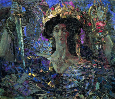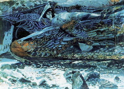 Whilst poking around on t'internet for inspiration for Cover Him with Darkness , I came across the art of Mikhail Vrubel (1856-1910). He was a Russian member of the Art Nouveau and Symbolist movements, and though he started off with a lot of religious art, it was eventually a fallen angel that destroyed him ...