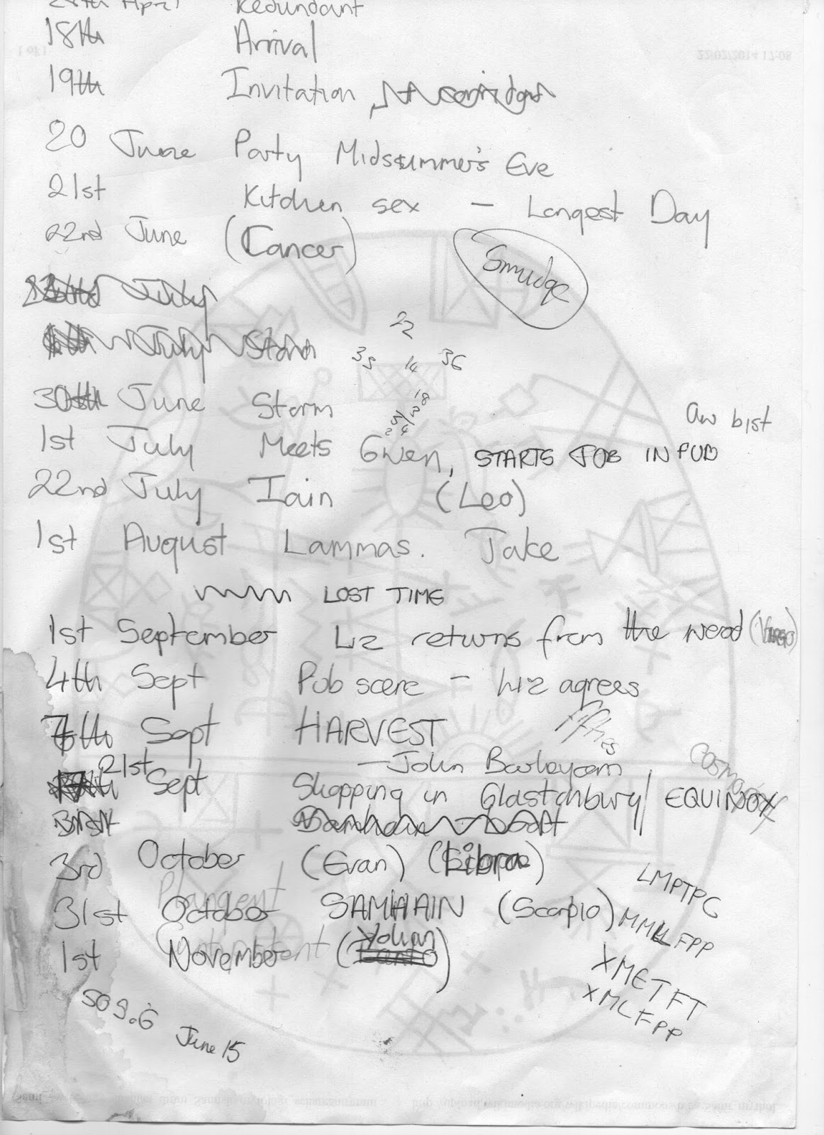 I have the handwriting of a ten-year-oldI thought I'd show you the sophisticated and extensive planning wot I do for my books. This is the timeline for the first two novellas in the Lover's Wheel quartet - Summer Seduction and Falling Deep.