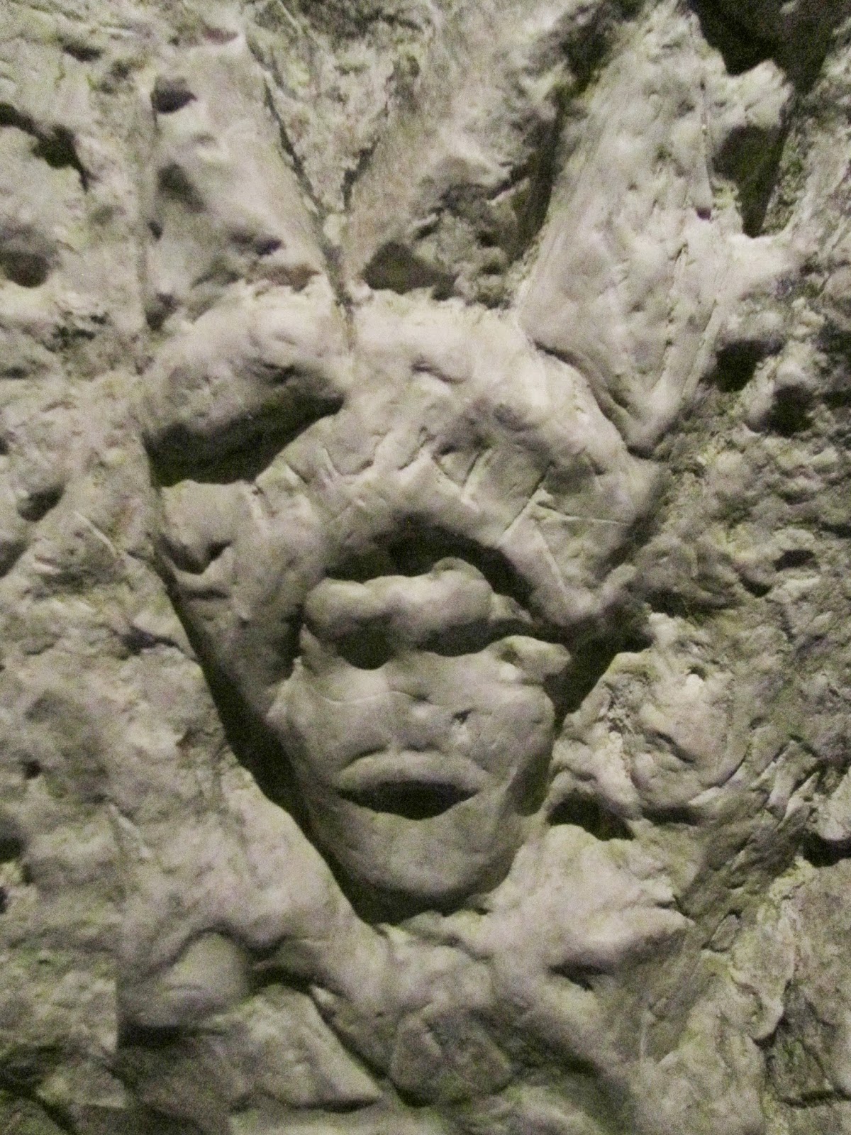Dashwood's mausoleum on top of the hill (caves lie directly below). The man was, quite literally, a monumental show-off.The caves are reputed to be haunted, for what that's worth, and here are some of the spooky faces carved into the chalk walls...