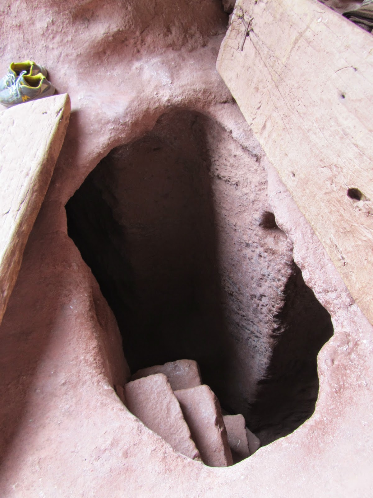 The grey pancake is "injera". Picture it as a piece of cold damp carpet-underlay.You'll be glad to hear that I did find a holy corpse, as is my quest on every foreign holiday:
