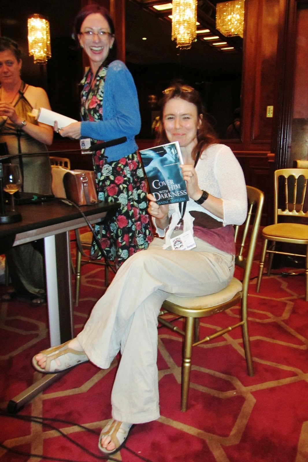 The workshop was followed by a Smut Slam in which 10 of us read from our work - and no kidding, there was a really high standard of writing. I read a previously unheard and unseen excerpt from Cover Him with Darkness ... in which Azazel does something bad. Again.