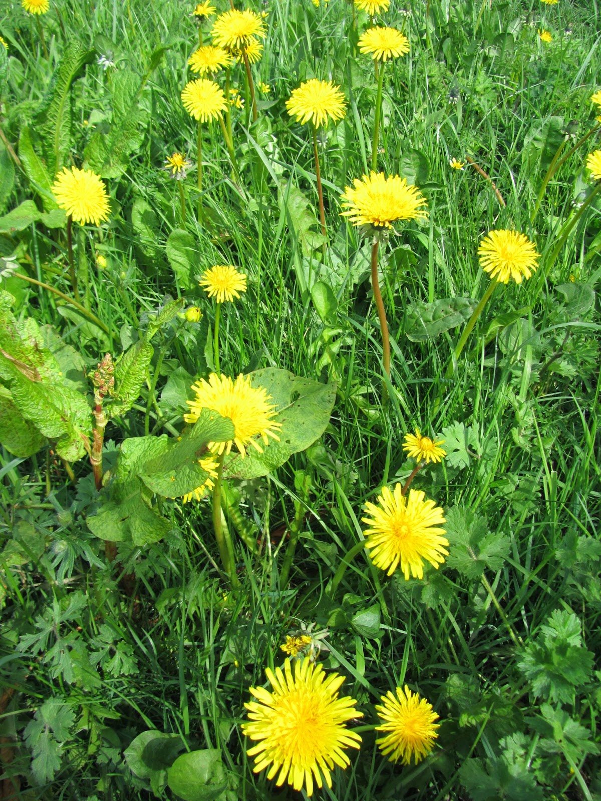 As the daffodils die off slowly, their place on the roadsides is taken by swathes of yellow dandelions, racing to do their thing before the Council ride-on mowers get them: