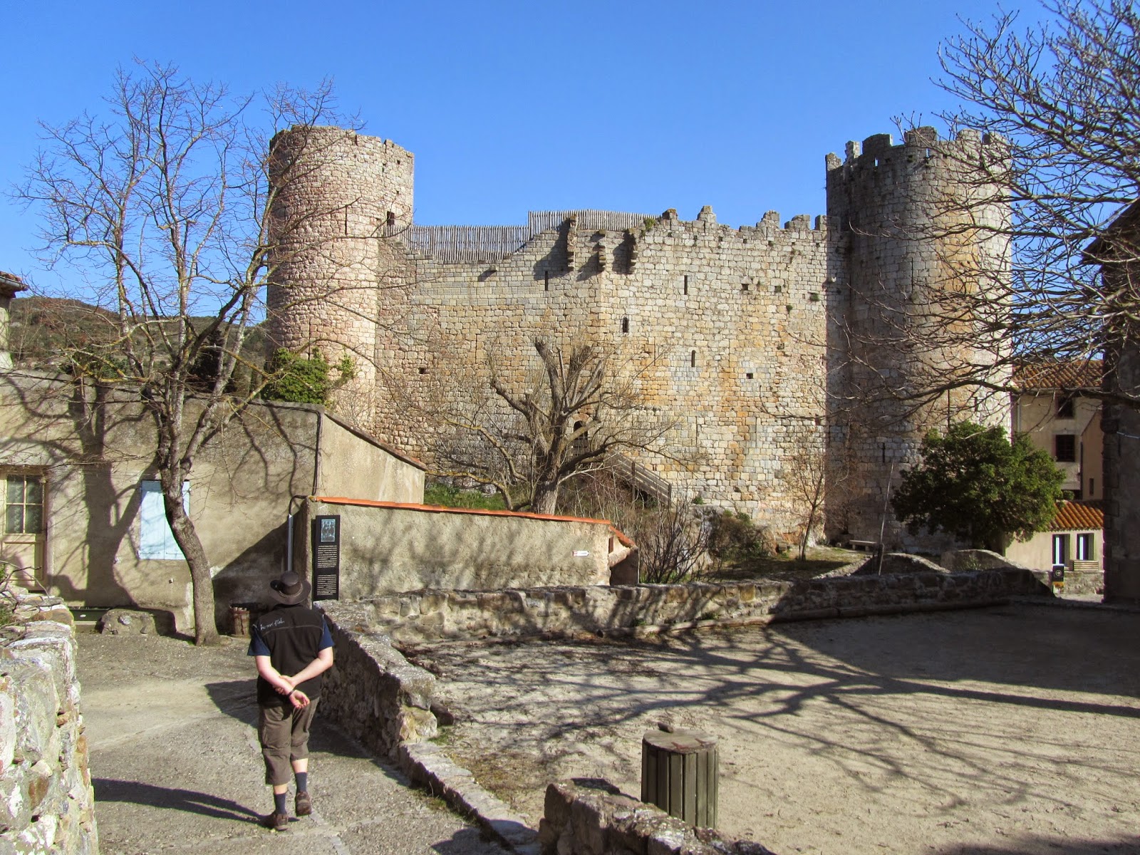 Looking west along the ridgeIt was the quietest eyrie ever. No traffic noises, no birdsong, no aircraft - and in March, only one other set of tourists. I fell in love with the place.We only managed to get a close look at three castles in that day. I would certainly go back in order to do more! It's an extraordinary landscape, even discounting all the crummy New-Age / Holy Blood and the Holy Grail / Dan Brown / Kate Mosse fantasy that's built up around it. lots of history, lots of atmosphere, lots of wide open space.