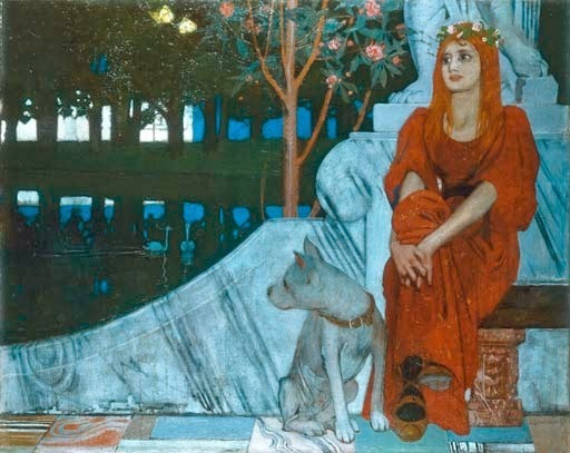 Sehnsucht by Oskar Zwintscher (1870-1916)German has some awesome words that we just don't have an equivalent for in English. Like schadenfruede ("the pleasure you get from another's pain or misfortune") and gemütlichkeit ("the warm fuzzy feeling you get when you are cozy, a little drunk, and surrounded by friends,") and weltschmerz ("the misery you feel after too much surfing the Net or watching the news, when you become convinced that the whole world has gone irredeemably to ratshit").