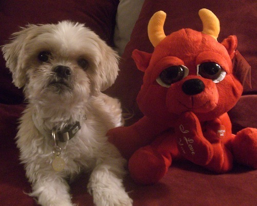 On the right is the little devil I got my ex-boyfriend on Valentine's Day. That wasn't the only gift I got him, of course — just the one that would turn out to be the most appropriate.