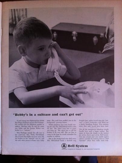 I love this ad. First of all, the kid locked his brother in a suitcase. I can relate and I don't even have a brother. But this ad pre-dates 911 and it tells you to teach everyone to "Dial Operator" in case of an emergency.