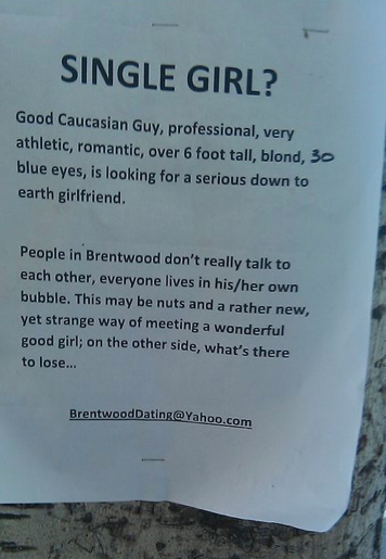 Why waste money on dating sites when you can just staple your personal ad to a tree?