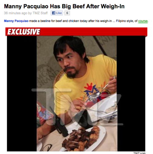 I once told my friend Karyn that this guy is her boyfriend. That's right. I'm the mature type who plays the "that's your boyfriend" game. (Sometimes "That's your husband.") At first she balked but now she's warmed up to the idea. However upon seeing this photo today on TMZ she expressed concern to me about the size of his "beef." She fears it might be tiny. And for a young lady who's been around the block (at least 20 times according to word on the street) this would pose a problem. What do you guys think?