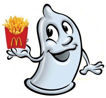 A very happy condom (which was apparently found in a 7 year old's McDonalds happy meal.