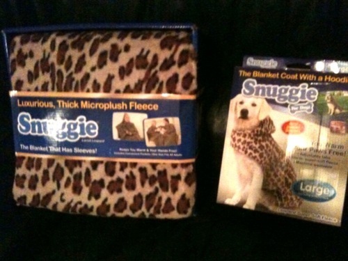 Yup. That's a matching leopard Snuggie for Max. So, I can not only give up on life (in style) immediately… I don't have to do it alone.