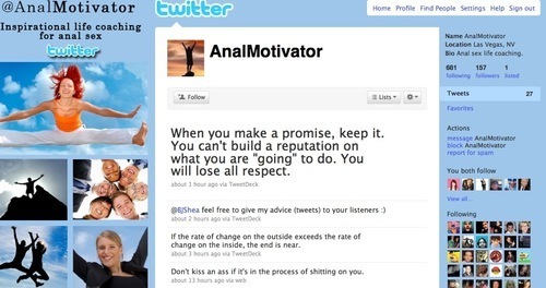 So, @analmotivator is following me now on twitter. I feel like...