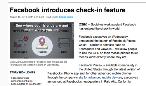Facebook's new "Places," shares your exact location via GPS. Because why should stalkers be limited to Twitter & Foursquare?