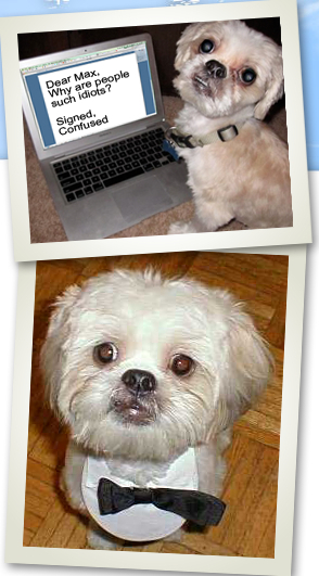 My dog, Max, just posted his column for this week. I'm not gonna say who but someone that all of you know asked one of this week's questions. Maybe you guys can figure it out. Click here to read the column and send in new questions!