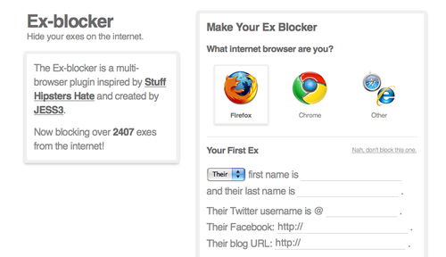 "Ex-Blocker" lets you delete all mentions of your ex on social networking sites. Or…you can just get the f*ck over it.
