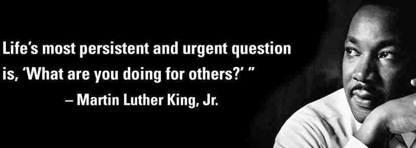 So, getting back to Dr. King. Yes, we should be doing things for others--thinking about others' well-being, supporting community fundraisers, offering a helping hand to those who need it--but I think it's just as important to do things with others. And most importantly, we should spend time thinking about others. It's easy to get wrapped up in our own cocoons--our own work life and nuclear family--but you can't fly inside a cocoon, can you?